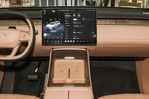 内饰方面,乐道L90以17.2英寸悬浮屏为核心,搭配8英寸后排控制屏和17.3英寸吸顶娱乐屏,支持三屏联动。35英寸AR-HUD可将导航与后方影像投射至前挡风玻璃,提升驾驶安全性。车机系统搭载高通骁龙8295P芯片,运行流畅顺滑。