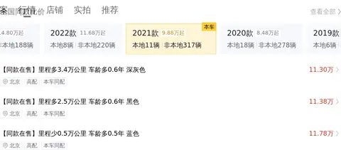 全国范围内与该车情况相似的仍有很多车源,我们把这些车源的价格信息以图片的形式为大家展示一下。