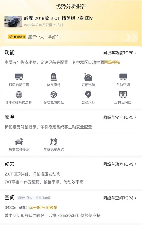 综上所述的新车含税价、用车成本、市场行情、优势分析、同款比价等数据仅供参考。在配置部分,因为二手车非标品,车辆可能会存在配置改装的情况,具体车况信息需要线下结合车辆实际情况进行综合参考。