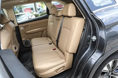 如果家里人多,需要 7 座,这款车可以选装 2+3+2 的座椅布局,选装价 3000 元。同样让 180cm 的体验者坐进第三排,头部空间约有一拳,腿部空间近一拳,短途乘坐两个成年人完全没问题,不会有明显的局促感,彻底摆脱了很多 7 座车 “第三排只是临时座” 的尴尬。平时带父母和孩子一起出门,再也不用纠结谁坐第三排会不舒服了。