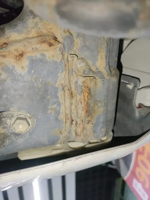 该零部件,锈蚀(L<10cm),非事故造成,受长期潮湿环境影响产生的铁锈腐蚀现象,不影响车辆使用