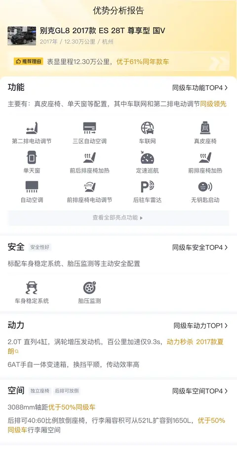 报价远低于市场行情,占有很大优势,因为别克GL8 2017款 ES 28T 尊享型 国V的市场行情价是14.17万-17.61万,它的报价则是12.8万,价格上有优势,同时它的保值率也高。