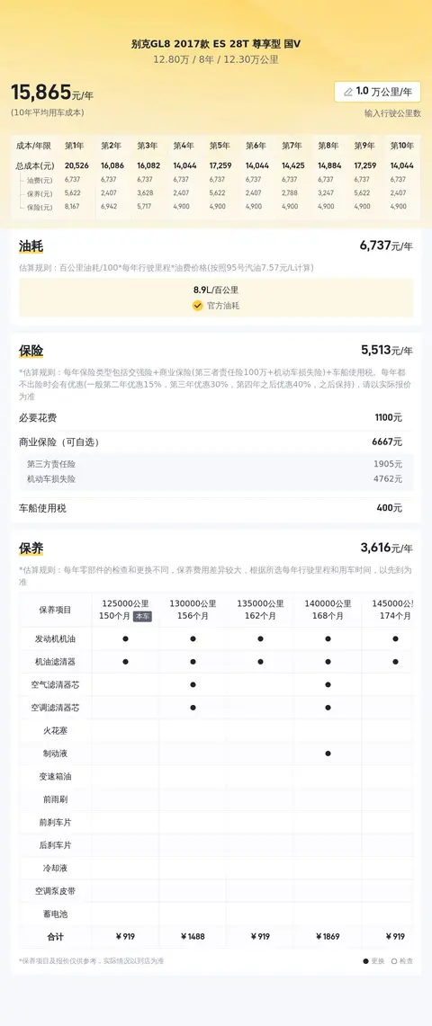 据估算,别克GL8 2017款 ES 28T 尊享型 国V的用车成本较低,因为同级车的最低用车成本是15978元/年,最高是21779元/年,而别克GL8 2017款 ES 28T 尊享型 国V是16430元/年,所以较低。