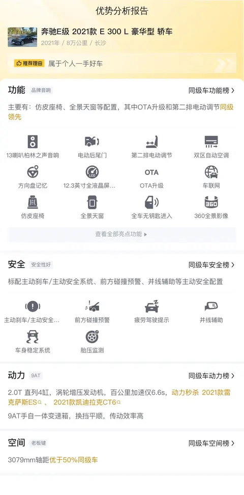 该车的具体版本是——奔驰E级 2021款 E 300 L 豪华型 轿车,上牌地为长沙,上牌日期2021年8月,表显里程8万公里,新车指导价49.78万,二手车报价28.58万,过户次数0次。支持分期购车,首付8.57万就可以开回家。