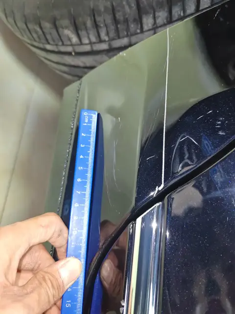 在外观检测部分,这辆车的表现一般,可能是前任车主的驾驶技术一般,或者对车辆使用并不是很爱惜。在外观部分的瑕疵还是比较多的,具体的瑕疵项分别为发动机盖划痕、前保险杠喷漆修复、后保险杠喷漆修复、左前门变形、右前门划痕、右后门划痕、右前翼子板划痕、左后翼子板瑕疵。下面我们将为您一一展示这些瑕疵项的实拍图。