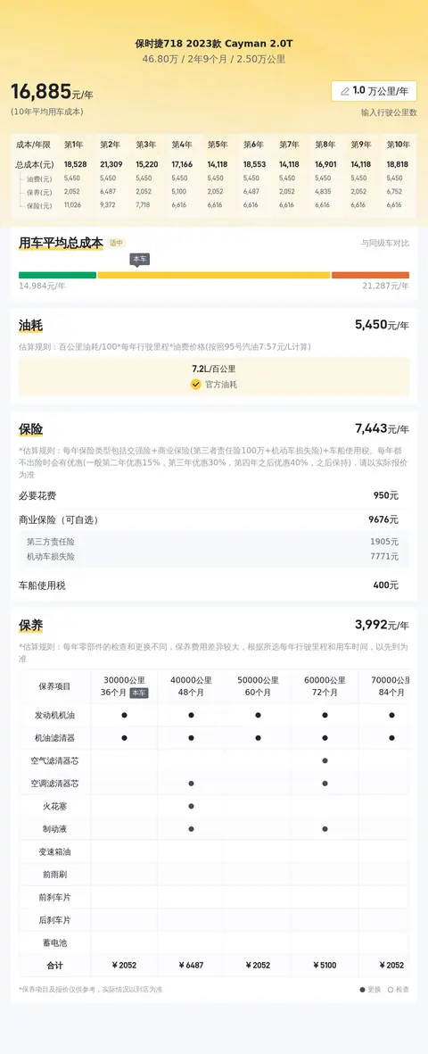 在用车成本方面,根据我们估算,这辆车的年均综合用车成本约1.7万元左右。这项花销是跟车主的实际用车场景和使用强度有直接变化的。