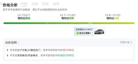 在二手车市场,Model Y的行情价是13.68万-16.66万,这辆车的报价是13.8万,报价偏低,同时它的保值率也高于同级车,未来几年价格相对会更稳定。