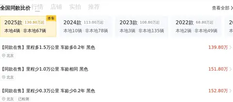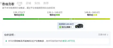 关于二手车市场行情部分,我们文中所有的市场行情、用车成本、优势分析、同款比价等数据均源自懂车帝数据库,仅供参考,车况信息需要结合车辆实际情况进行综合参考。这辆二手揽胜 2025 款 3.0 L6 400PS 盛世加长版的市场行情价格大约在 118.1万-141.29万之间,但受车辆状况等因素的影响,实际售价可能会有所不同。至于这辆车的报价148.8万,则是高于市场行情价的。在用车成本方面,该车型的年均综合用车成本大概在每年 2.3万元左右。