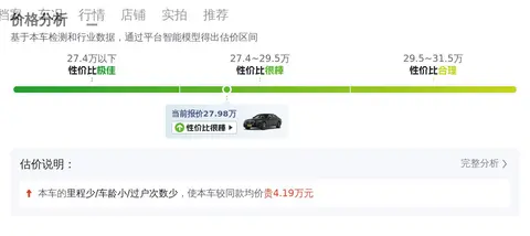 当前市场上,这款车型的二手车报价在27.67万-33.15万之间,而本车的报价为27.98万,相对较低。在用车成本方面,如上图所示,在百公里油耗为8.0L的前提下,该车的10年平均成本大约在2.1万元/年(不包含保险和保养费用),而同级车最低10年平均成本为1.8万元/年,最高为4.3万元/年,因此本车的用车成本相对较高,但考虑到其豪华配置和性能表现,这一成本仍在合理范围内。