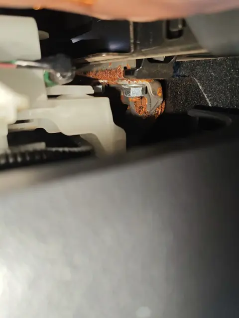 它的主驾座椅滑轨、副驾座椅滑轨出现了锈蚀,但不是泡水导致,有可能是使用环境所致,这个不影响正常使用。