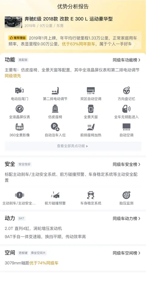 综上所述,奔驰E级 2018款 改款 E 300 L 运动豪华型凭借其出色的设计、豪华的内饰、强劲的动力和先进的科技配置,在市场中保持着较强的竞争力。作为一款运动豪华型轿车,它在保证驾驶乐趣的同时,也兼顾了乘坐的舒适性和实用性。无论是商务出行还是日常代步,都能满足消费者的需求。在二手车市场中,奔驰E级 2018款 改款 E 300 L 运动豪华型也保持着较高的保值率和良好的口碑。对于追求品质和性价比的消费者来说,它无疑是一个值得考虑的选择。但需要注意的是,购买二手车时要确保车辆的合法合规,建议通过正规渠道购买,并进行全面的检查和评估。希望这篇文章能在您选购车型的时候有所帮助哦~