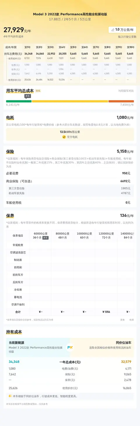 养车成本方面,按照每年行驶1万公里计算,包括保险、电费、保养等费用在内,预计每年需支出约28477元。这一成本在同级别车型中处于较高水平,购车前需充分考虑这一因素。