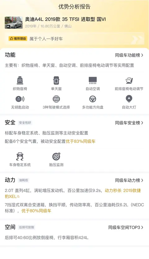 综上所述的新车含税价、用车成本、市场行情、优势分析、同款比价等数据仅供参考。在配置部分,因为二手车非标品,车辆可能会存在配置改装的情况,具体车况信息需要线下结合车辆实际情况进行综合参考。