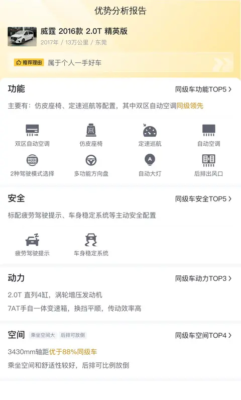 综上所述的新车含税价、用车成本、市场行情、优势分析、同款比价等数据仅供参考。在配置部分,因为二手车非标品,车辆可能会存在配置改装的情况,具体车况信息需要线下结合车辆实际情况进行综合参考。