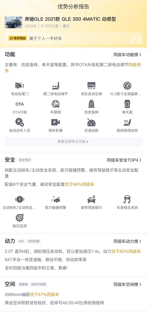 对于一辆车况好的二手车,大家更想了解它相对于同级竞品有哪些优势,我们综合分析后,从动力、空间、功能配置等方面为您总结了这辆车的优势,希望对您有用。