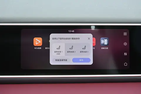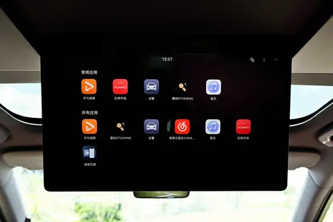内饰采用全新设计的座舱布局,配备16.1英寸悬浮中控屏、副驾娱乐屏及AR-HUD抬头显示系统。换装怀挡机构后,中央通道区域增设双手机无线充电板与杯架,并融入木纹装饰提升质感。座椅提供5座与6座两种布局,第二排独立座椅支持腿托调节,主驾零重力座椅需选装(Ultra版标配)。此外,新车还搭载后排手动遮阳帘、车载冷暖箱、流媒体后视镜及HUAWEI SOUND音响等配置。