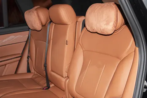 后排的“零重力座椅”是个亮点,靠背支持电动无级调节,调节角度能达到137°,比不少飞机公务舱的座椅角度还大,而且坐垫里的慢回弹海绵有15毫米厚,坐上去支撑感和下陷感平衡得很好,长时间乘坐不容易觉得累。后排中间地板几乎是纯平的,就算坐满三个人,中间乘客的脚也有地方放。不过,后排中间座位的头枕是固定的,也没有软包,如果长时间坐,颈部可能会感觉不够舒服。