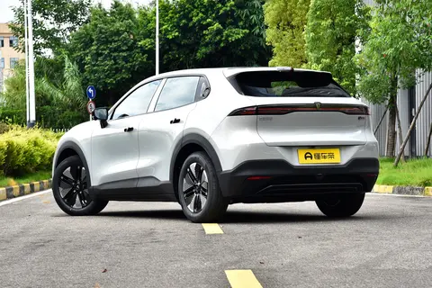 车身侧面的设计重点在实用性和空气动力学优化上。悬浮式车顶是当下流行的设计,通过黑色的A柱、B柱和C 柱,营造出车顶“悬浮”的视觉效果,让侧面看起来更轻盈。隐藏式电动门把手是个很实用的细节,车辆解锁时门把手会自动弹出,方便上下车;车辆锁止后,门把手会收回并与车身贴合,不仅减少了行驶中的风阻,还能避免传统门把手在冬天积雪结冰、夏天被暴晒发烫的问题,日常使用更省心。19英寸的多辐式轮教造型简洁大方,没有复杂的花纹,既容易清洁,又能在行驶中减少空气阻力,对提升续航达成率有一定帮助,轮瑴的尺寸与车身比例也很匹配,不会显得过小或过大。