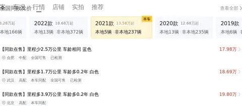 当前市场上,这款车型的二手车价格大约在19.75万到24.55万之间。需要知道的是,具体的售价会受到车辆状况等因素的重要影响。就拿今天要说的这辆车来说吧,它的售价21.98万,低于车况相似的同款二手车价格,而且它的里程数适中,保养得当,整体性价比较高。