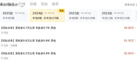 奔驰S级 2024款 改款 S 400 L 商务型,新车含税价为105.01万,现在的二手车报价是78.8万,2025年02月首次上牌,在此期间过户1次。
