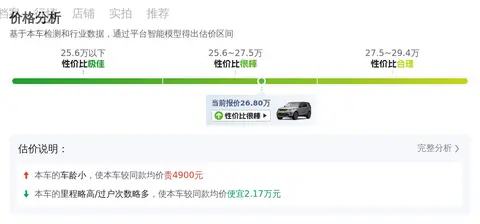 二手车市场从来都是“一车一行情”,不过,通过分析懂车帝平台所售的同款车型的市场行情,也可以得出一个大致的价格区间。根据懂车帝的数据分析,这辆车的售价在二手车市场行情在 26.8 万元至 34.67 万元之间。这里要说的是,车辆的实际成交价受很多因素影响,比如车龄、里程、车况保养状态等,而这些差异都会直接影响到车辆的最终成交价。
