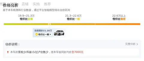 根据懂车帝的大数据分析,目前这款车的二手车市场价格在18.05万至21.74万之间。具体的价格因车辆的车龄、里程、保养情况等因素而定。本车定价21.28万,位于市场高位,价格较高。预计未来三年内价格相对平稳,但会受到市场波动和车辆状况变化的影响。