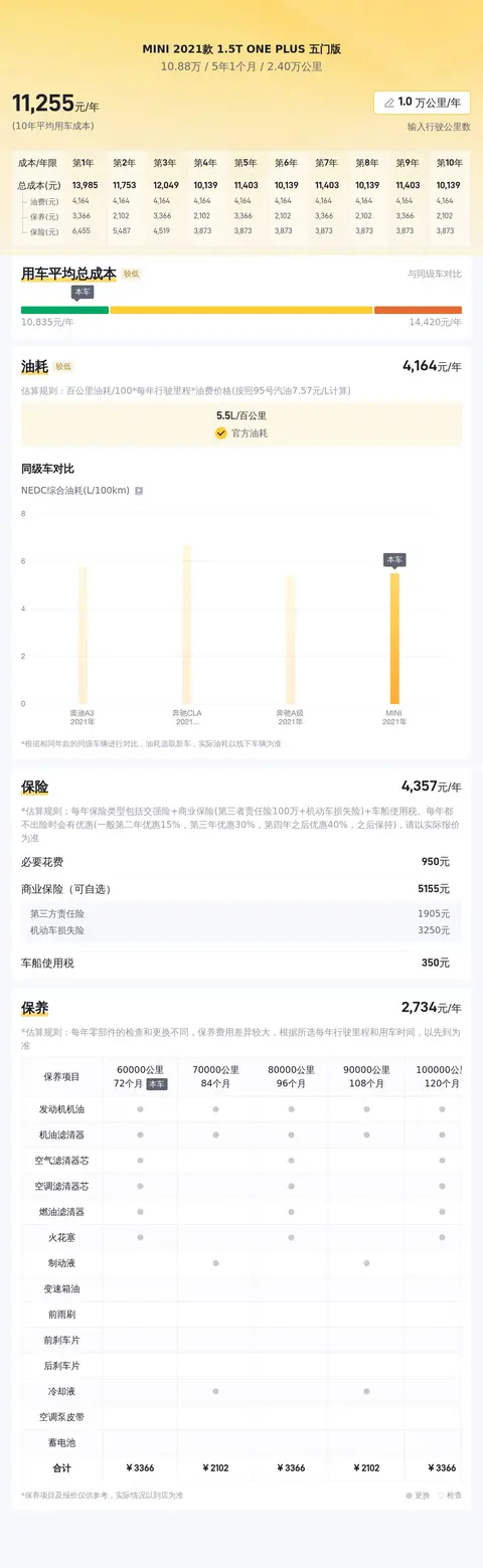 在用车成本方面,按照每年2万公里的行驶里程计算,包括保险、保养和其他费用在内,预计每年的用车成本约为16807元,每月约为1400元,每公里约为0.84元。这一成本在同类车型中属于合理范围,对于追求经济性和性价比的消费者来说,这是一个可以接受的数字。