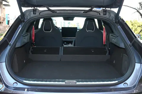 让性能控心动的当属001 FR版的碳纤套件。碳纤维运动尾翼展开时极具攻击性,高速行驶时能提供实实在在的下压力,配合碳纤维后视镜壳,不仅减轻了簧下质量,视觉冲击力直接拉满。开在路上回头率堪比百万级跑车,好几次在服务区都有人过来问:"这是极氪新出的性能版吗?也太帅了!"这种优雅与力量的平衡,正是猎装车型的精髓所在。焕新极氪001没有为了运动牺牲实用性,掀背尾门打开后能形成超大开口,放婴儿车、行李箱都毫不费力,这种"颜值与实用兼备"的设定,太懂家庭用户的需求了。