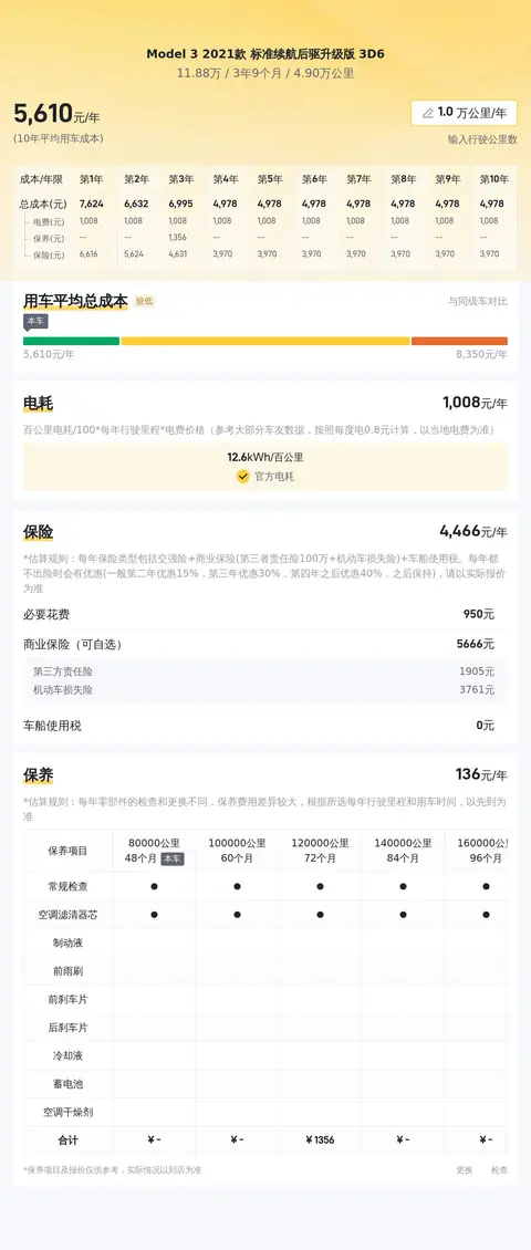 再来说说用车成本。电费支出、保险费用和保养开支,这些都是养车必不可少的一部分。咱们估算了下,这辆车的年均综合用车成本大概在每年2.2万元左右。当然,这只是一个大约的数字,具体花多少钱还得看您怎么用了。