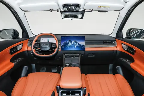 内饰方面,整体布局还算简洁,提供有双幅式多功能方向盘、悬浮式全液晶仪表盘、虎款和豹款中控屏的造型有所不同,但均为悬浮式设计,电子怀挡也没有缺席,操作台部分设计有无线充电面板以及杯架。