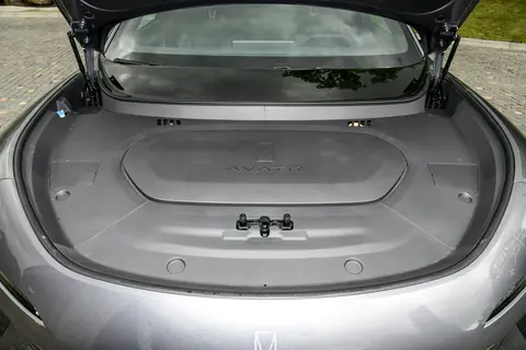 底盘是长安的强项,阿维塔07的太行智控底盘果然没让人失望。前双叉臂+后多连杆独立悬架,全铝合金材质减轻了簧下质量,配合同级少有的4液压衬套,路面细碎颠簸过滤得特别彻底,过减速带时几乎没有生硬的冲击感。我专门找了段泥泞坑洼路段测试,升级后的悬架对晃动抑制很到位,车里放的水杯几乎没洒出水;而未升级的老款悬架晃动明显更大。在高速过弯时,车身侧倾控制得很好,不会有"坐船"的晃动感,这对于一台中型SUV来说相当难得。更惊喜的是转弯半径,这台近5米长的车,转弯半径居然只有3.2米,在小区狭窄路段掉头,一把就能过,比很多紧凑型SUV还灵活。Max+版还搭载了智能空气悬架和CDC动态阻尼减震,能根据路况自动调节悬架软硬,舒适和操控能做到按需切换。