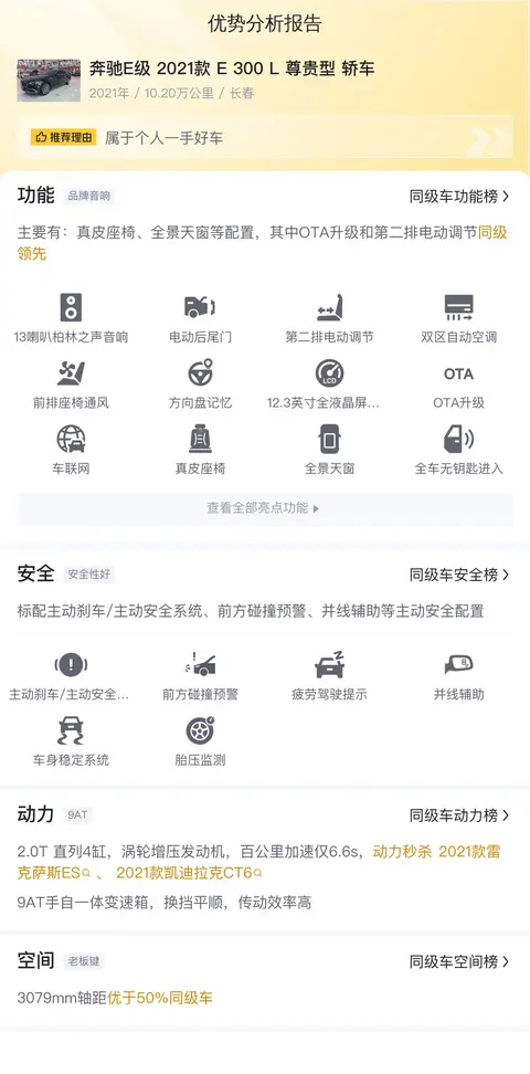 一辆车跑得好不好,心脏得强大!这辆奔驰E级,动力这块儿,那是相当给力。2.0T的直列4缸涡轮增压发动机,一脚油门下去,百公里加速才6.6秒,这速度,简直是要上天啊!关键还配了个9AT手自一体变速箱,换挡比刘翔还快,传动效率高,让你开车就像开游艇,那叫一个爽啊!