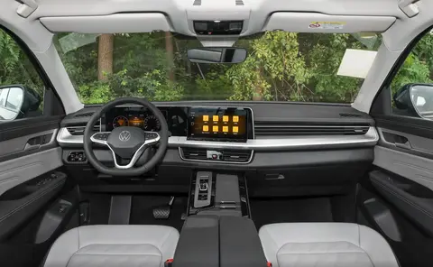 精英巡行众享款售价为24.29万元,该款车的配置较为基础,碰撞预警、主动刹车的辅助驾驶功能也在该车上体现,一定程度上能提升驾驶安全性。真皮方向盘手感细腻、握感扎实,前方通过10.25英寸+12英寸双屏共同组成智能化部分,常规的功能均没有缺席,基本贴合主流用户的使用需求,如果有需要,还可选装三区空调,可为后排家人带来更好的用车体验。但需要注意的是,该版本未配备倒车影像,新手司机驾驶这款大体积车型并不轻松,尤其是在复杂的场景下。