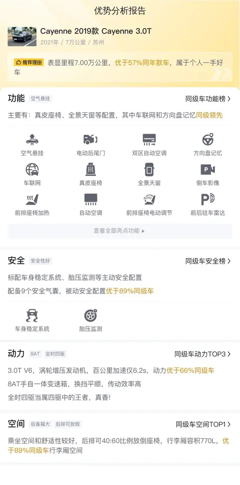 综上所述的新车含税价、用车成本、市场行情、优势分析、同款比价等数据仅供参考。在配置部分,因为二手车非标品,车辆可能会存在配置改装的情况,具体车况信息需要线下结合车辆实际情况进行综合参考。