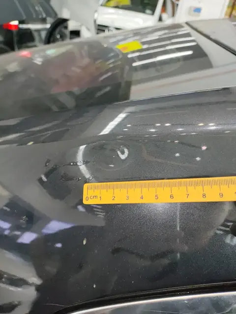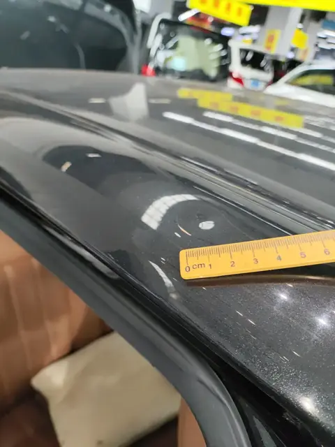 在重大事故检测中,发现右车顶边梁有变形的问题,但不是更换修复,不会影响车辆的结构强度和安全使用。这里也展示一下瑕疵实拍图。