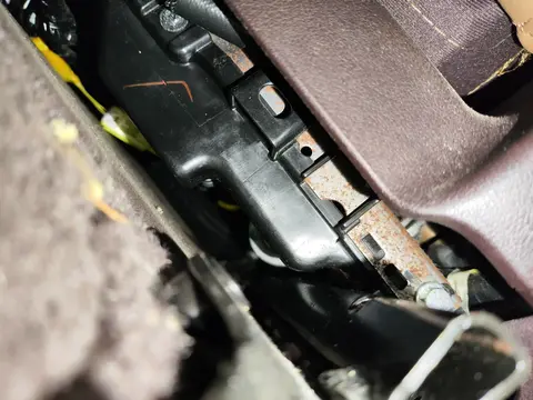 在泡水检测中,发现主驾座椅滑轨有拆卸痕迹,副驾座椅滑轨有锈蚀,但不是泡水导致的问题,也不会影响车辆的正常使用。这里也展示一下瑕疵实拍图。