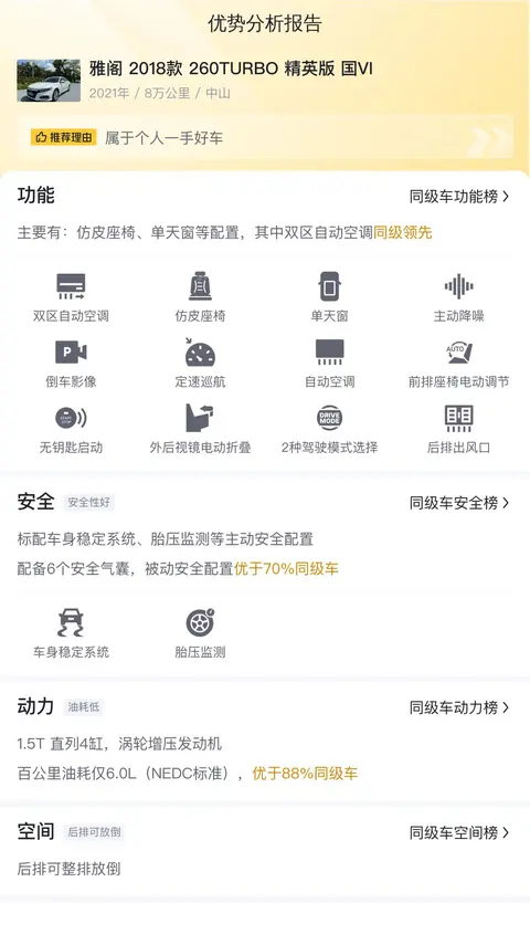 综上所述的新车含税价、用车成本、市场行情、优势分析、同款比价等数据仅供参考。在配置部分,因为二手车非标品,车辆可能会存在配置改装的情况,具体车况信息需要线下结合车辆实际情况进行综合参考。
