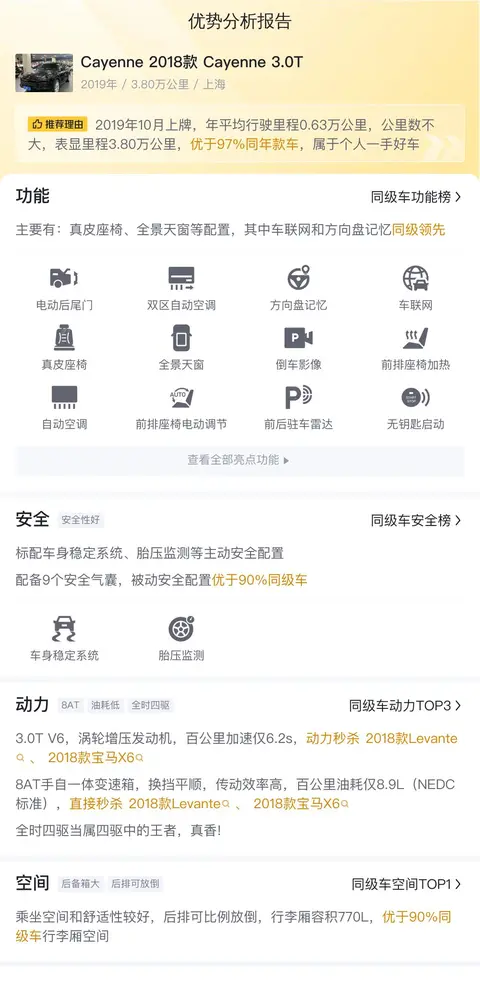 总的来说,这辆Cayenne 2018款 Cayenne 3.0T以其豪华的内饰、出色的动力性能和宽敞的空间,展现出了极高的性价比。如果您正在寻找一辆既能满足日常出行需求,又能提升生活品质的二手车,那么这辆车绝对是一个值得考虑的选择。