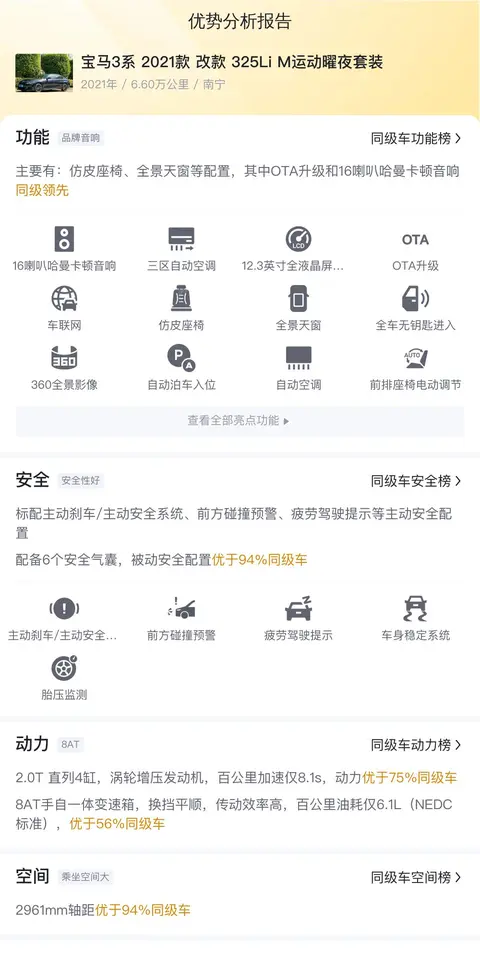 宝马3系(图片|配置|询价)2021款改款325Li M运动曜夜套装,车源地南宁,现价只需18.88万,首付5.66万即可拥有!这款车不仅有着出色的性能,还有着极高的品质和口碑。在如今的二手车市场上,这款车也是备受追捧的热门车型。让我们来一起看看这款车的庐山真面目吧!