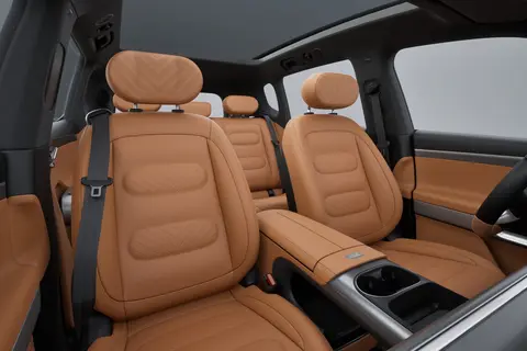 座舱的豪华体现在以人为本的舒适配置上。内饰软质包覆率高达85%,Nappa小牛皮座椅+HDD绗缝工艺,营造S级新奢质感氛围,行业SHOU款“兼顾舒适坐姿与安全保护”零重力座椅,后排也可一键享受“头&等舱”级体验。它搭载的行业Shou个集成安全保护系统的前排零重力座椅,参考美国 NASA 设计的 121° 黄金零压角高度契合人体工程学,配合 310 毫米超长腿托,即便是 1 米 8 身高的乘客也能舒展落座。座椅采用 10 叠层舒适结构,集成 8 点式电动按摩、吸风式通风与 0.68㎡ 超大面积加热功能,带来 SPA 级驾乘体验,同时配备坐垫安全气囊与 ABTS 座椅集成式安全带,兼顾舒适与安全。后排则支持 10° 电动调节靠背,最大膝部空间可达 480mm,配合门侧板按键控制的一键 “头&等舱” 模式与可 40° 旋转、亮度无及调节的航空阅读灯,让长途乘坐也能如沙发般惬意。全车还打造 “头&等舱级” NVH 静谧空间,标配侧窗与前风挡隔音夹层玻璃,辅以 57 处大克重双阻抗吸音棉和 40 处橡木与液压衬套组合降噪设计,为座舱隔绝外界喧嚣。