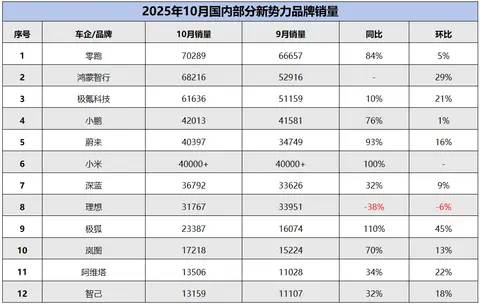 从笔者统计的部分新势力品牌销量来看,10月份除了理想依旧同环比双跌,其他10余家悉数增长。