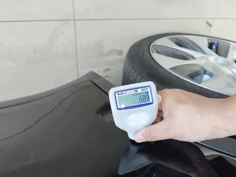 在二手车市场,车况往往是决定购买意愿的关键因素。这辆Model Y经过全面检测,整体状况良好。在外观检测部分,车辆的绝大部分部位都保持着原厂状态,未经过修补或喷漆,原厂漆面的光洁度和色泽都表现出了车辆的良好维护状态。仅有右后门一处因轻微剐蹭进行了钣金修复,这属于正常驾驶过程中的小损伤,不影响车辆的整体美观和结构安全。