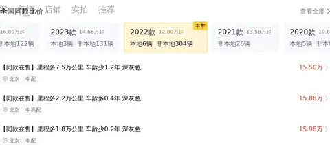 市场行情方面,同款车型的二手车价格大致在16.65万至20.23万之间。具体的价格因车辆的车龄、里程、保养情况等因素而异。本车在里程和车龄上占有一定的优势,且本车是2022款中高配车型,配置和安全性都比较全面,对价格产生了积极影响。预计两年后市场价值为14.71万,三年后12.96万,四年后11.43万,五年后9.72万。从保值的角度来看,前三年的折旧率较高,之后的折旧率逐渐放缓。应特别考虑购车成本、未来折旧价值以及个人需求和使用计划等因素,做出明智的购买和管理决策。