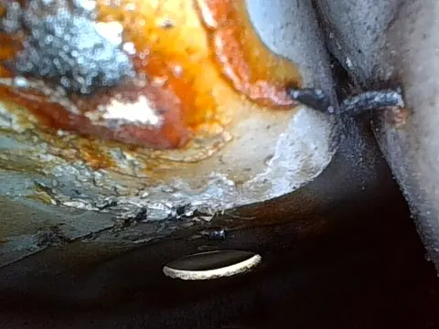 水箱框架有拆卸痕迹,但未达到事故标准,可能是更换水箱框架所致;