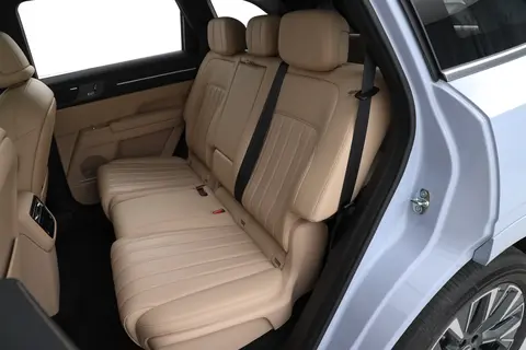 先看空间布局,这台车的轴距达到了2820mm,这也为灵活的座椅布局打下了基础。我们试驾的是七座版本,2+3+2的布局完全不局促,我身高183cm,坐进驾驶位,头部还有一拳两指的余量,肩部横向空间也很充裕,不会觉得压抑。第二排是全家的“黄金座位”,腿部空间能达到980mm,我跷二郎腿完全没问题。座椅支持前后260mm超长滑动和靠背角度调节,中间过道宽度约23cm,老人孩子上下第三排特别方便。贴心的是,第二排还配备了独立空调出风口、USB充电口和座椅加热功能,冬天带老人出门,长辈再也不用怕冷了。很多七座SUV的第三排都是“应急专用”,但山海L7 PLUS的第三排真能坐成年人。我老婆身高168cm,坐进第三排,头部还有三指余量,腿部离第二排座椅还有一拳距离,短途乘坐1-2小时完全不憋屈。而且第三排同样有空调出风口和充电口,细节做得很到位。