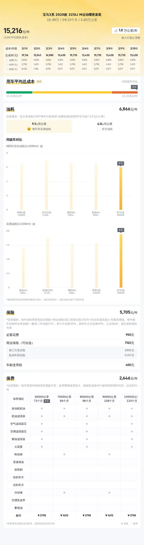 按照每年行驶一万公里计算,10年平均用车成本约14670元/年。