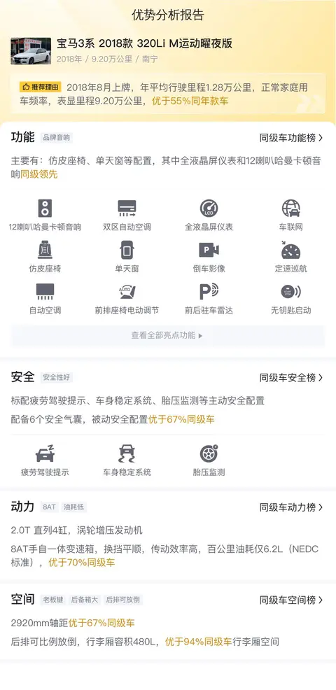 在竞争激烈的豪华中级车市场,每款车型都各具特色。针对宝马3系2018款320Li M运动曜夜版,我们也进行了优劣势分析,希望能够在您选购车型的时候有所帮助。