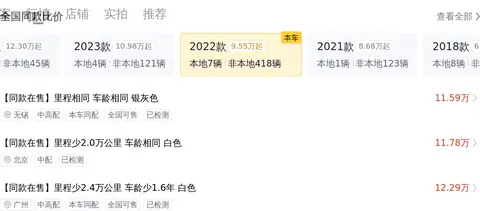 它的新车含税价是24.06万,对比之下,开了几年便有10.38万的差价。
