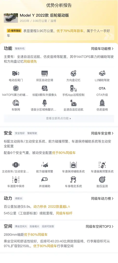 综上所述的新车含税价、用车成本、市场行情、优势分析、同款比价等数据仅供参考。在配置部分,因为二手车非标品,车辆可能会存在配置改装的情况,具体车况信息需要线下结合车辆实际情况进行综合参考。
