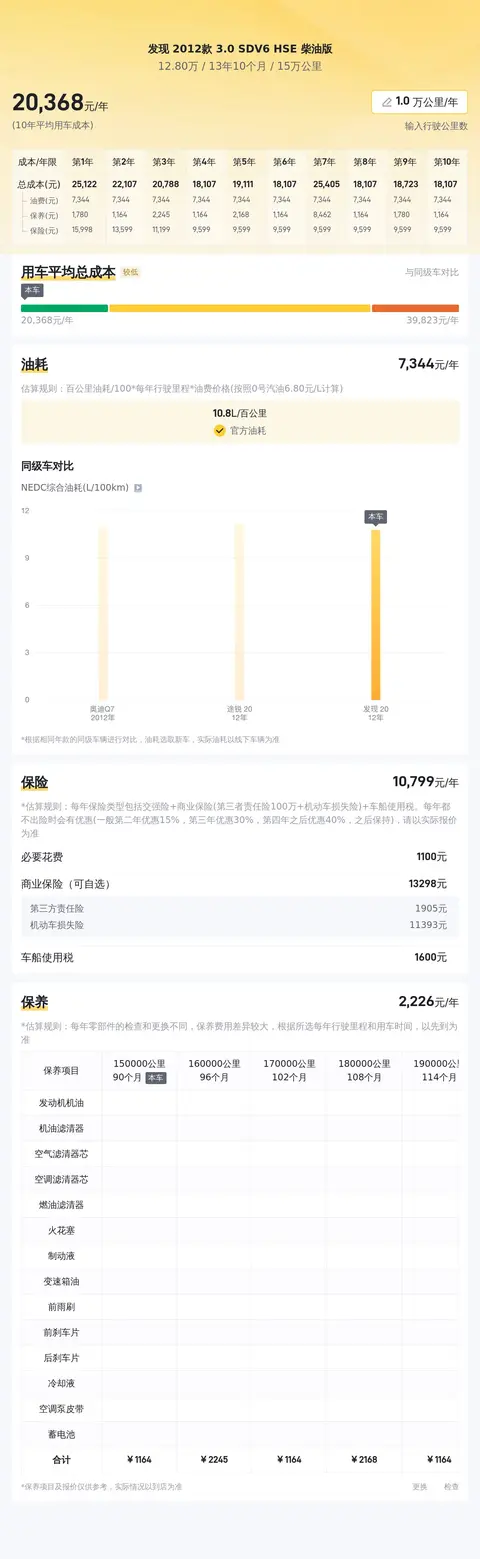 根据懂车帝大数据分析,该车的市场行情在11.22万至14.17万之间,本车的报价为12.8万元,属于合理区间。考虑到车辆折旧的因素,本车的性价比还是不错的。当然,具体的售价受到车辆状况等因素的影响,可能存在一定的波动空间。本车的里程数为15万公里,车龄14年,综合性价比指数69%,用车成本按照每年2.1万元计算,保险费用一年约1.1万元,考虑到柴油车的特性,油耗可能比汽油车更低,这一点可能会降低一部分用车成本。